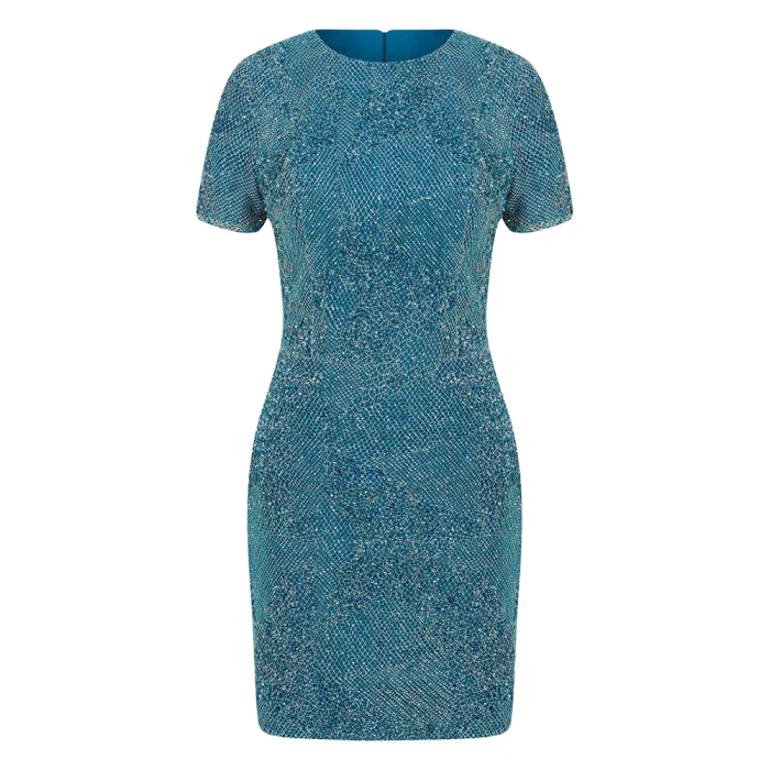Ürün: Kısa Kollu İthal Dantelli Boncuklu Mini Gece Elbisesi