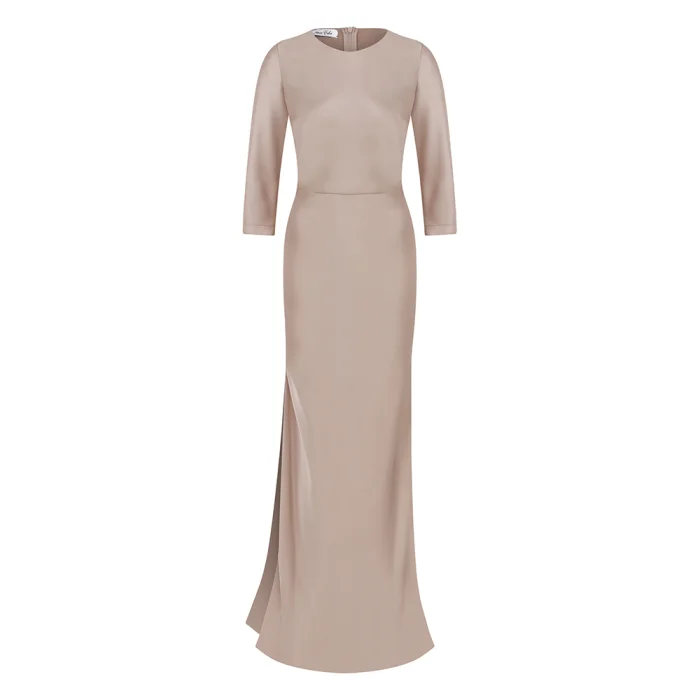 Ürün: Saten Bisiklet Yakalı Yırtmaçlı Uzun Elbise