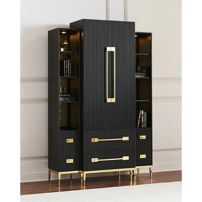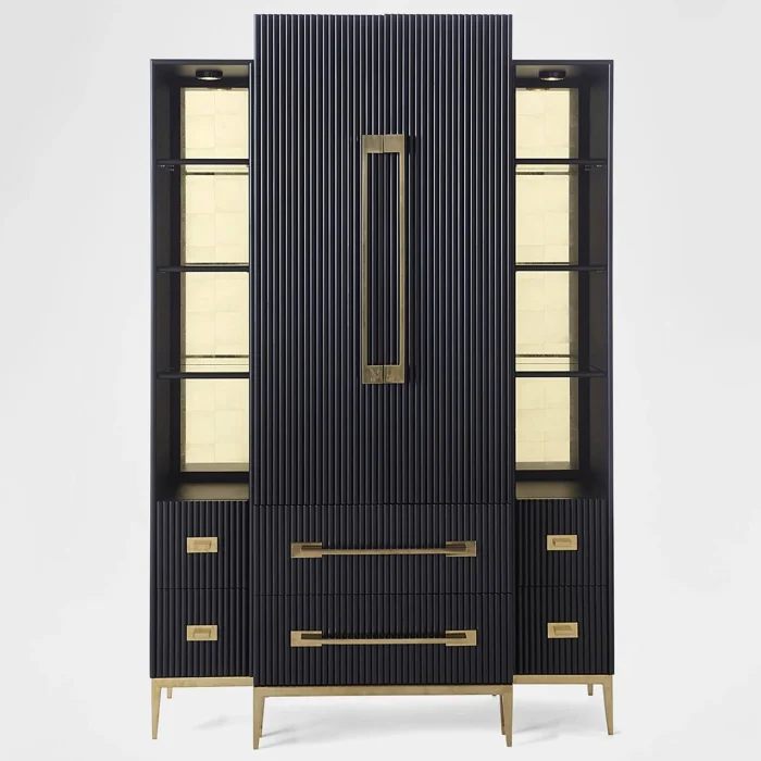 Malzeme: Masif Meşe Ahşap, Cam, Paslanmaz Çelik, Pirinç Kaplama