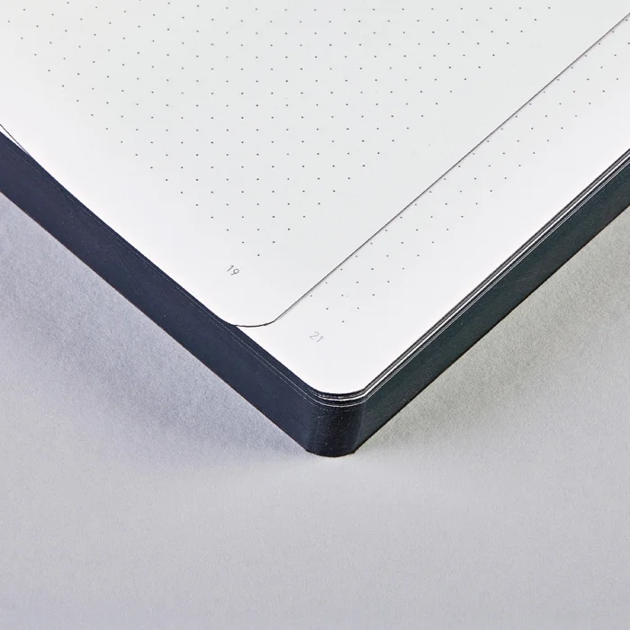 • Defter motifini bütünleyen ve defterinizi toz ve kire karşı koruyan kenar baskı • Defterin düz durmasını sağlayan iplik dikiş • Pürüzsüz geri dönüştürülmüş deri • Çevre dostu • Yumuşak ve esnek kapak • Yüksek kalite serigraf baskı • 120 Gr yüksek kaliteli munken kağıt • 256 numaralandırılmış sayfa • Sayfa Stili : 3,5 mm gri noktalı • Defter ağırlığı : 640 gr • Format L: 165x220 mm • Üretim Yeri : Almanya