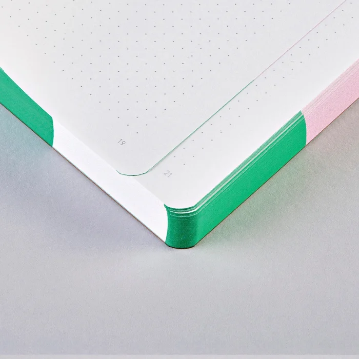 • Defter motifini bütünleyen ve defterinizi toz ve kire karşı koruyan kenar baskı • Defterin düz durmasını sağlayan iplik dikiş • Pürüzsüz geri dönüştürülmüş deri • Çevre dostu • Yumuşak ve esnek kapak • Yüksek kalite serigraf baskı • 120 Gr yüksek kaliteli munken kağıt • 256 numaralandırılmış sayfa • Sayfa Stili : 3,5 mm gri noktalı • Defter ağırlığı : 640 gr • Format L: 165x220 mm • Üretim Yeri : Almanya