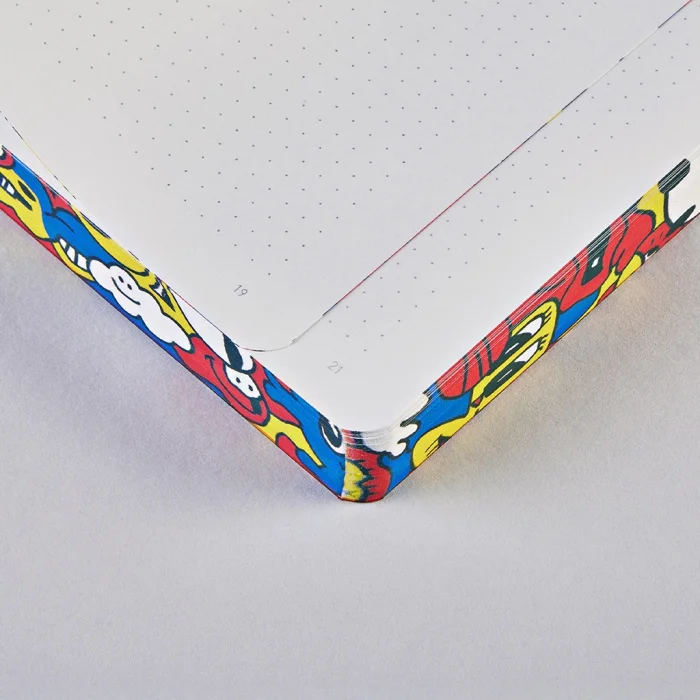 • Defter motifini bütünleyen ve defterinizi toz ve kire karşı koruyan kenar baskı • Defterin düz durmasını sağlayan iplik dikiş • Pürüzsüz geri dönüştürülmüş deri • Çevre dostu • Yumuşak ve esnek kapak • Yüksek kalite serigraf baskı • 120 Gr yüksek kaliteli munken kağıt • 256 numaralandırılmış sayfa • Sayfa Stili : 3,5 mm gri noktalı • Defter ağırlığı : 640 gr • Format L: 165x220 mm • Üretim Yeri : Almanya