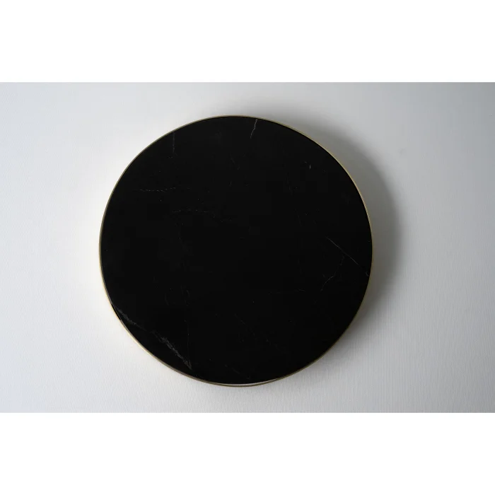 Çerçeve: Ham PirinçMateryal: Beyaz, Siyah, Leylak, Yeşil arebescato mermer ve travertenÜrün Ebatı: Çap: 30 cm Yükseklik: 2.5 cm (yaklaşık)Ağırlık:2300 g- Renk ve desen farklılıkları, doğal mermerin eşsiz güzelliği ile uyumludur ve her bir parçayı türünün tek örneği kılar.
