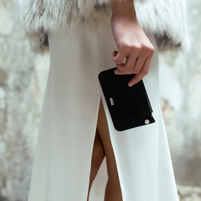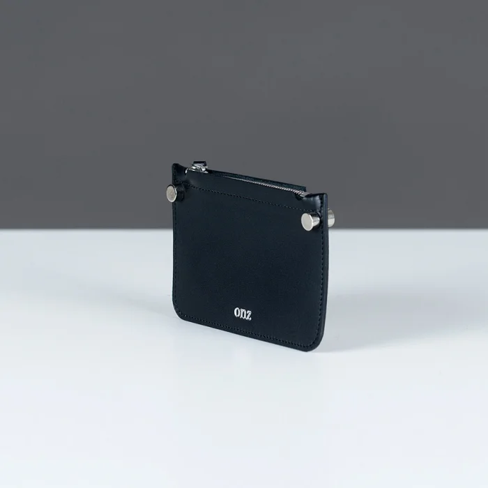 Bitkisel tabaklanmış dana derisinden küçük boy cüzdan. Üzerinde gümüş rengi iki adet 1.5cm halter aksesuar ve gümüş rengi logo bulunur. Astarsızdır.