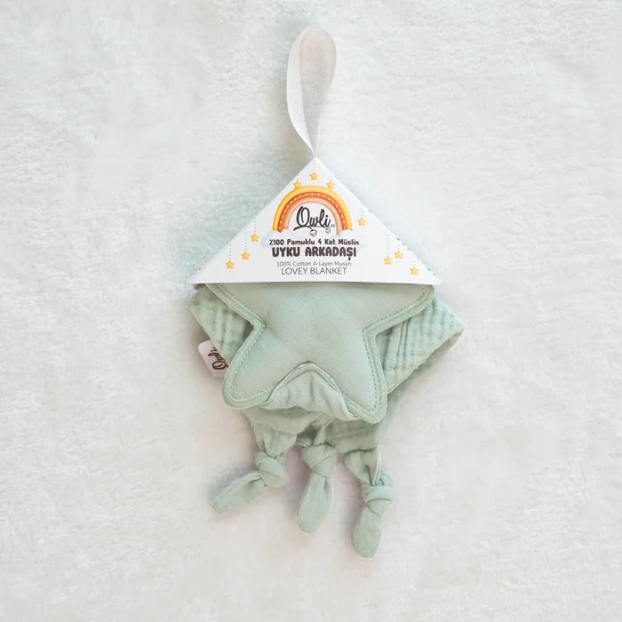 %100 Pamuklu Owli LoveLayers Müslin Uyku Arkadaşı Mint Yeşili Rahatlık, güven hissi ve huzurlu uyku sağlar. %100 yüksek kaliteli pamuktan yapılmıştır. %Yumuşak ve hafif müslin kumaş. 24x24 cm ölçülerindedir. Kolay temizlenir, makinede yıkanır. Ebeveynlerin kokusunu emerek bebek ile bağı artırır. Keşif ve oyun için mükemmeldir.