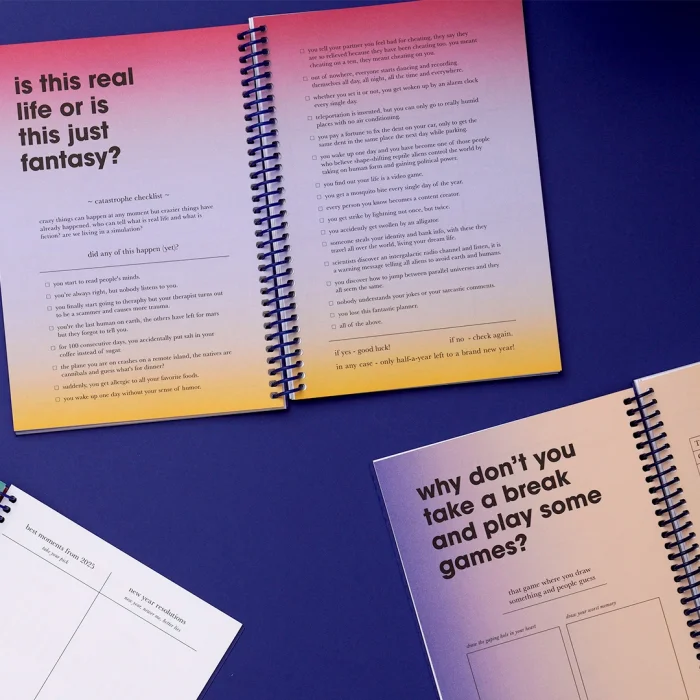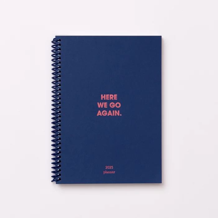 Here We Go Again biraz alaycı, biraz komik hem aylık, hem de haftalık planlama sayfaları olan bir ajanda. Oyundur, sarkastik yazıdır, her sayfasında eğlenceli bir içerik bulabilirsiniz. (Özellikle renkli sayfaları incelemeniz önerilir.) * A5 boyutunda (14,8x21 cm) * 160 sayfa * Kapak: 300 gr gri kağıt üzerine hologram varak uygulaması * İç Sayfalar: 110 gr. beyaz kağıt * Aylık planlama sayfaları * Haftalık planlama sayfaları * Not sayfaları * Eğlenceli bazı sayfalar * İçerikler İngilizcedir.