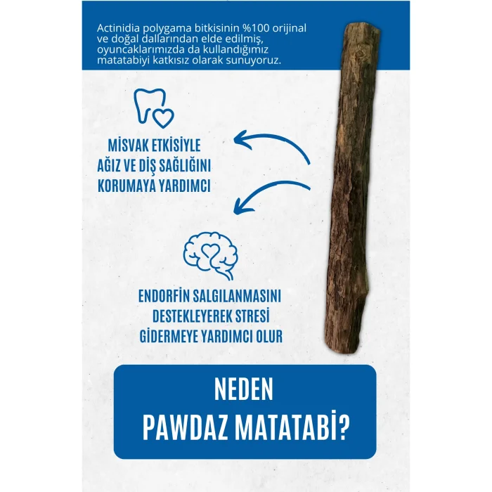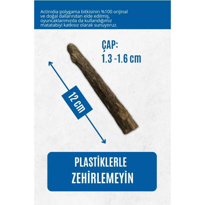 %100 doğal Actinidia polygama, nam-ı diğer matatabi ağacının en özel olan 1,3 - 1,6 cm kalınlığındaki dallarından hazırlanmış STICK, kedilerin temas etmekten hoşlandığı esansiyel yağları içerdiği için