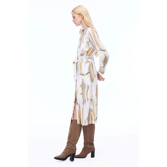 Ürün: Serenity Regular Fit Soyut Desenli Midi Boy Takma Kol Bisiklet Yaka Elbise