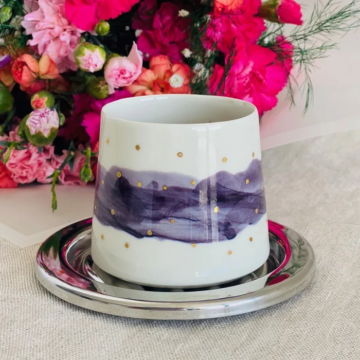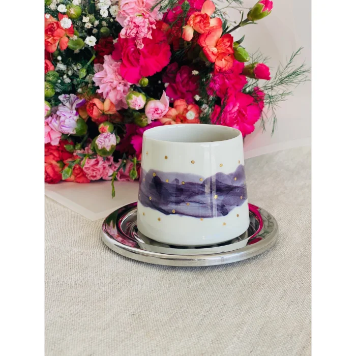 Fransız Limoges Porselen çamurundan el yapımı olarak üretilmiştir. 24 ayar altın dekorludur.