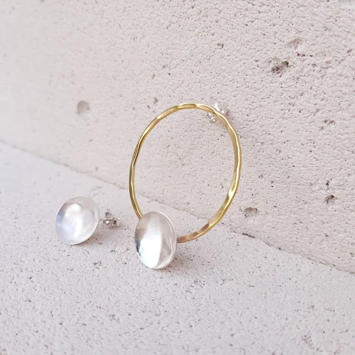 Life is a Circle Serisi'nin gümüş ve pirinçten elde yapılan asimetrik küpesi…