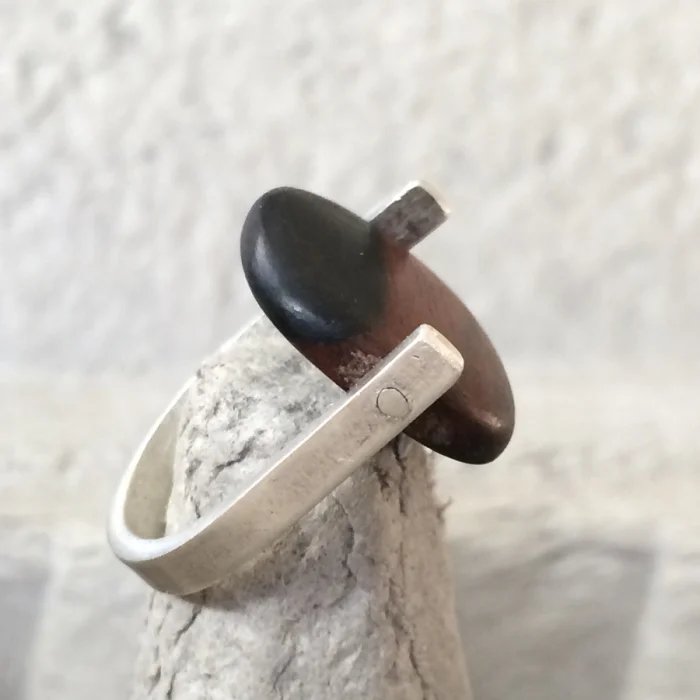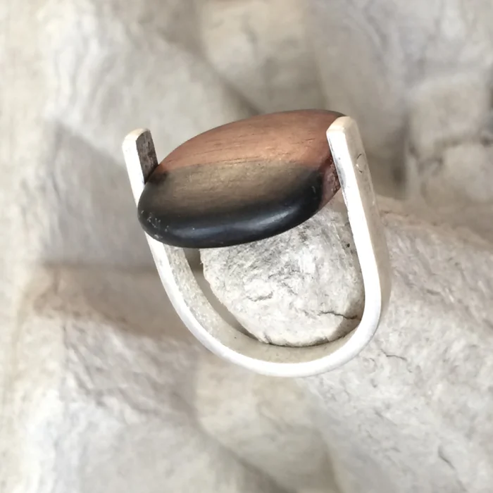 Hindistan seyehatinden alınan Abanoz parçaların kalın gümüş kol ile birleşmesi ile oluşturulan hafif, dayanıklı ve teninizin bir parçası olmaya aday özel bir yüzüktür.