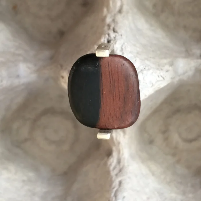 Hindistan seyehatinden alınan Abanoz parçaların kalın gümüş kol ile birleşmesi ile oluşturulan hafif, dayanıklı ve teninizin bir parçası olmaya aday özel bir yüzüktür.