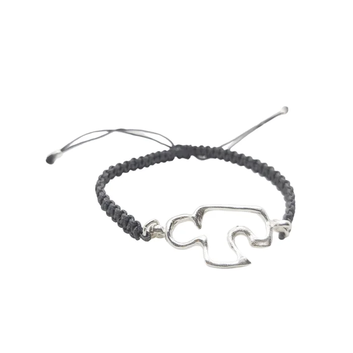 Kayıp mum tekniği ile gümüşe dökülen sembol yapboz parçasının, renkli ve ayarlanabilir örgü bileklik ile eşlendiği bu tasarım, hikaye kartı ile gelir.