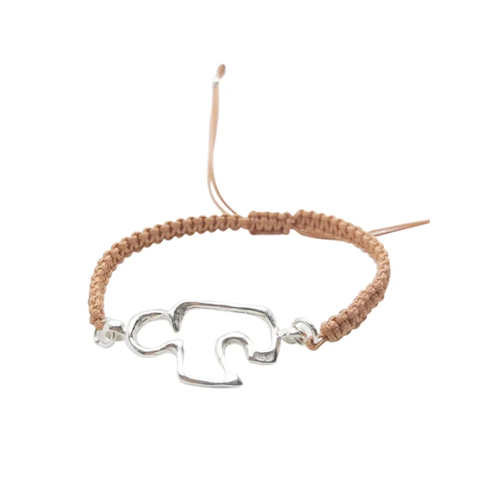 Kayıp mum tekniği ile gümüşe dökülen sembol yapboz parçasının, renkli ve ayarlanabilir örgü bileklik ile eşlendiği bu tasarım, hikaye kartı ile gelir.