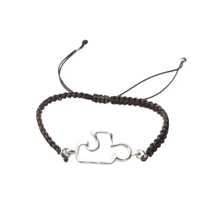 Kayıp mum tekniği ile gümüşe dökülen sembol yapboz parçasının, renkli ve ayarlanabilir örgü bileklik ile eşlendiği bu tasarım, hikaye kartı ile gelir.