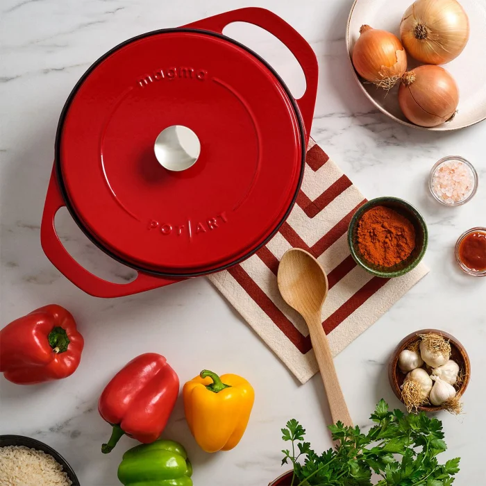 Son teknoloji dökme yöntemleri ile kalınlığı inceltilen dökme demir ürünler, inovatif tasarımı sayesinde hafifletilmiştir. Tutma kulpları, kullanıcılara kullanım rahatlığı sağlaması adına geniş tasarlanmıştır.