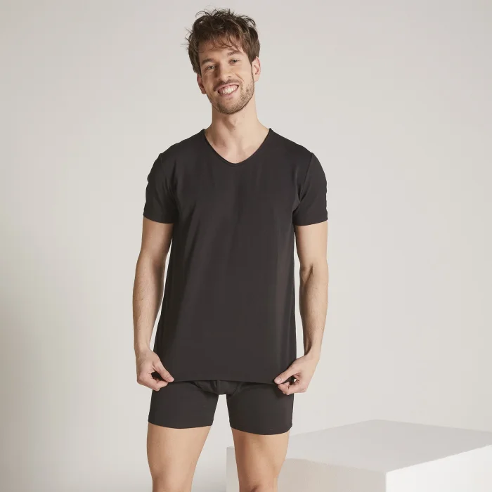 Pamuklu Sosis Yaka T-Shirt dokusu ve likralı kumaşı ile size gün boyu rahatlık ve esneklik sağlar. Nefes alabilen kumaşı sayesinde cildiniz daha konforlu ve kuru kalır. Talimatlar ürün üzerine rahatsız edici bir etiketle değil, baskı ile yazılmıştır. Marka logomuz, ürünün koluna kaliteli bir nakış ile işlenmiştir. Materyal:95% pamuk, esneklik için 5% elastan (likra).Modelin ölçüleri:Boy:184 Göğüs:100 Bel:74 Basen:97 .Modelin üstündeki beden:M