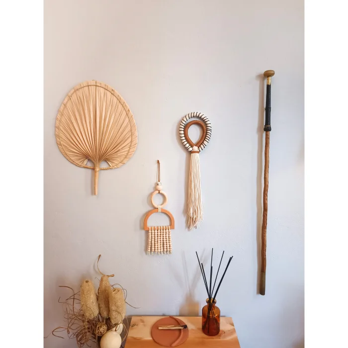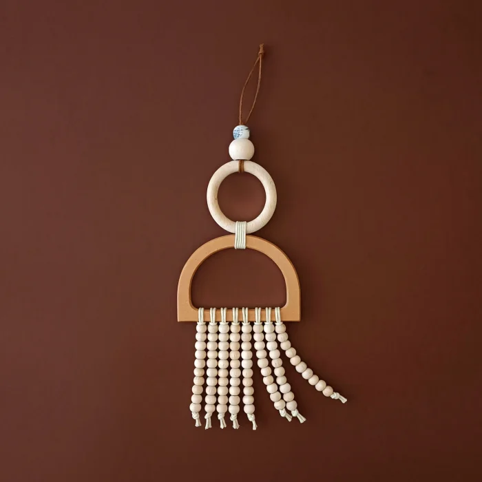 İlya yarım ay ve daire şeklindeki aparatlarla ham ahşapla tasarlanmış, ardından boncuk sütunlarla süslenmiştir. Antrelerde, oturma odalarında, verandalarda ve balkonlarda keyifle kombinyelebilirsiniz. Her ürün el yapımıdır bu yüzden ölçüler ve renkler ufak farklılıklar gösterebilir.