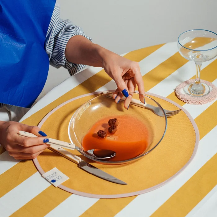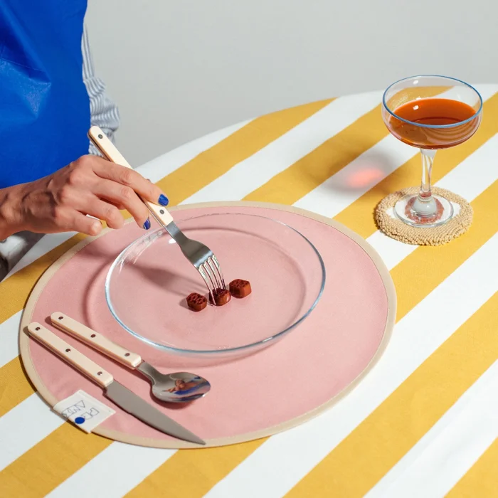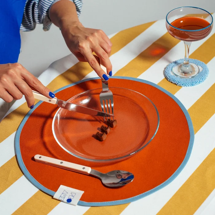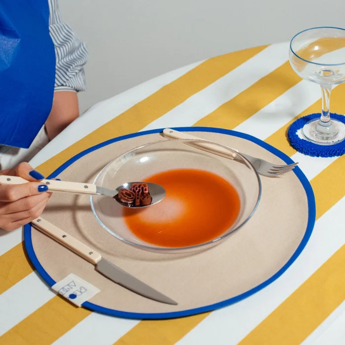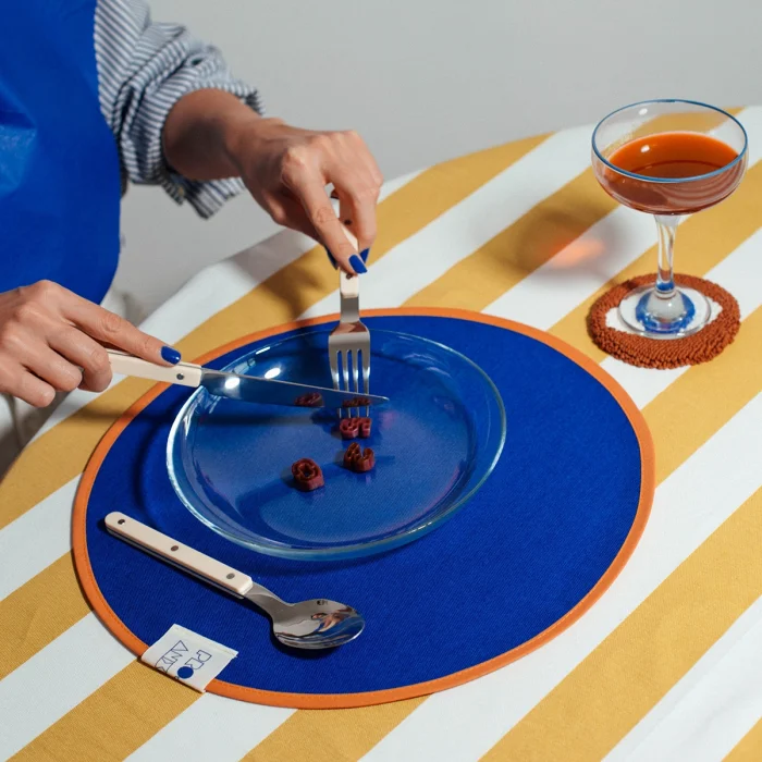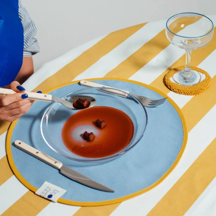 Su iticiliği olan kumaştan dikilmiş 35 cm çapındaki 6 Adet Amerikan Servis.