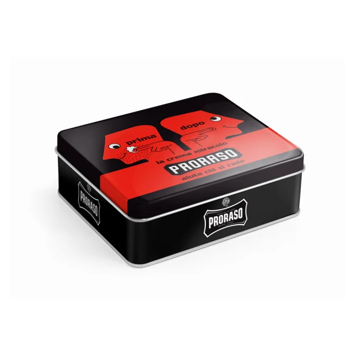 Vintage metal kutu içerisinde Proraso en iyi tıraş ürünlerini size sunuyor. Geleneksel tıraşı seven erkekler için mükemmel bir hediyedir. -Sandalağaç Tıraş önce and sonrası Tıraş Kremi 100ml