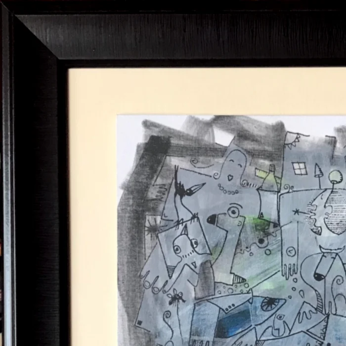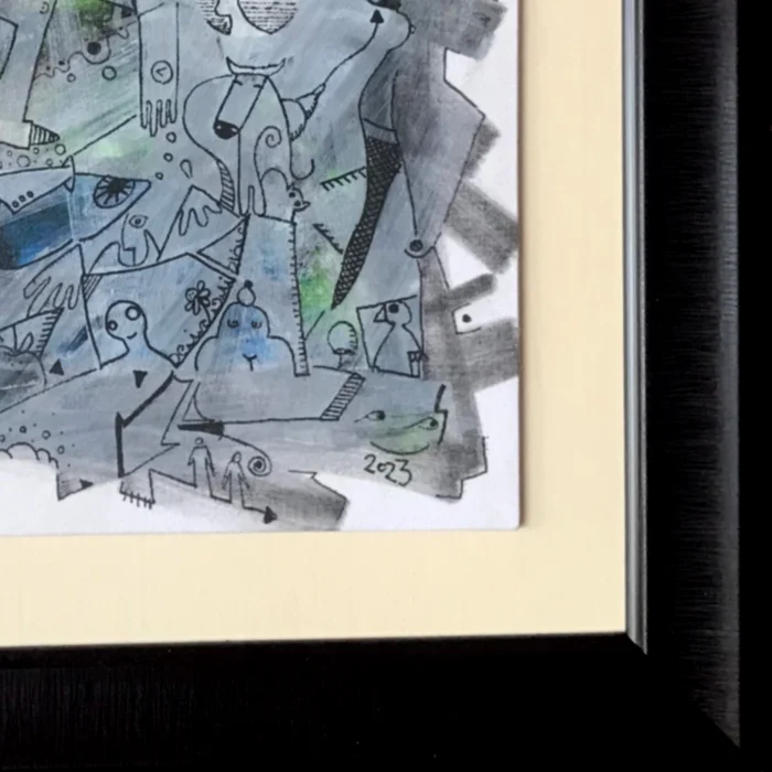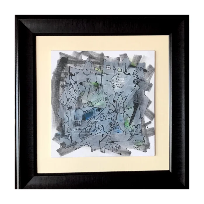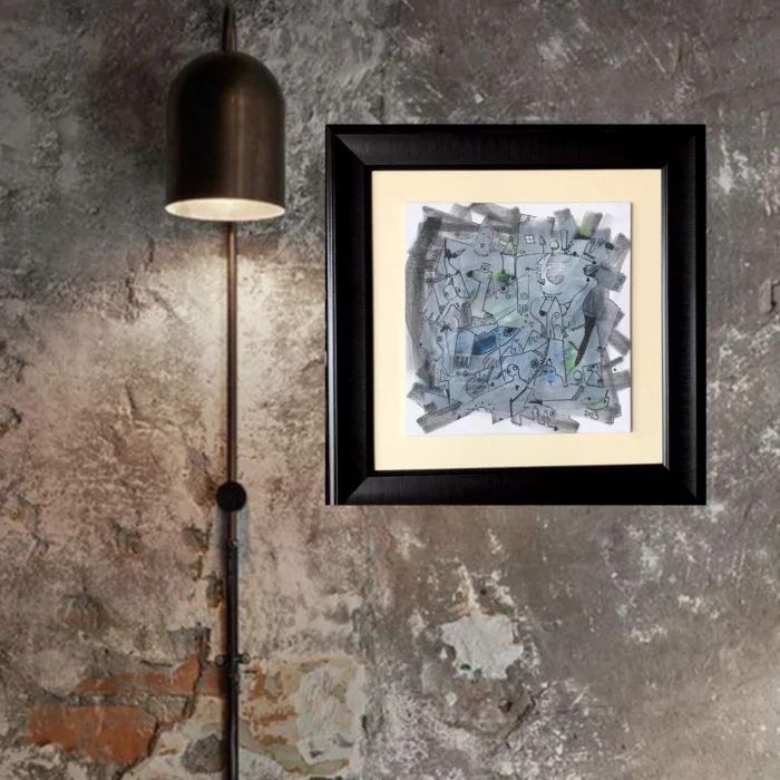 Pres tuval üzerine akrilik teknikle çizilmiş, figüratif soyut eser. Ressam İsmail Haldun Yılmaz'a ait. Sertifikalı ve imzalı. Çerçeveli ve asma aparatlı.