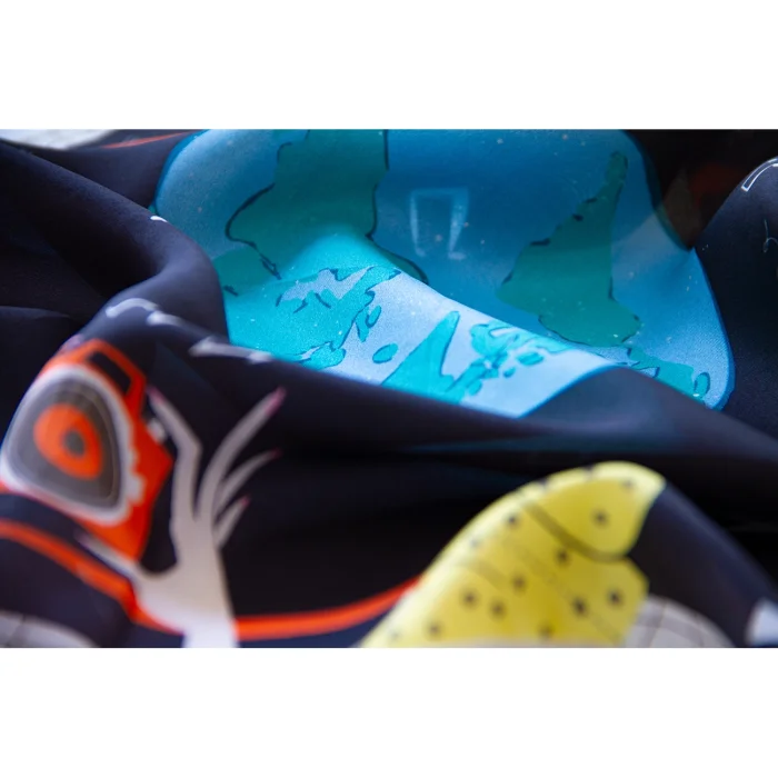 Renk : Siyah Kumaş : %100 Vegan İpek Ölçü : 45X45Cm Yazlık Fresh İpektir. Kenarları El İle Dikilmiştir. Desenler El Çizimi Olup Dijital Ortamda Renklendirilerek Çalışılmıştır. Özel Kutularında Gönderilir. Sadece Kuru Temizleme Önerilir. Sınırlı Sayıda Üretilmiştir.