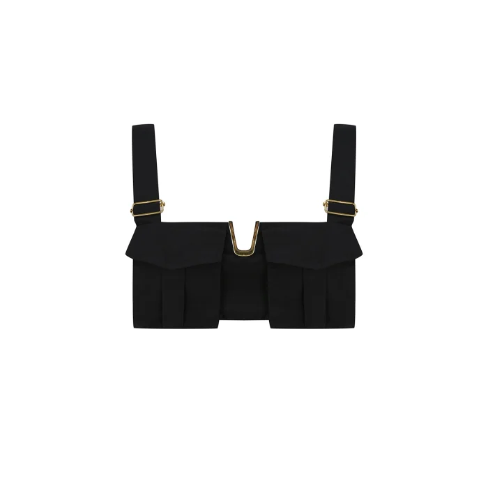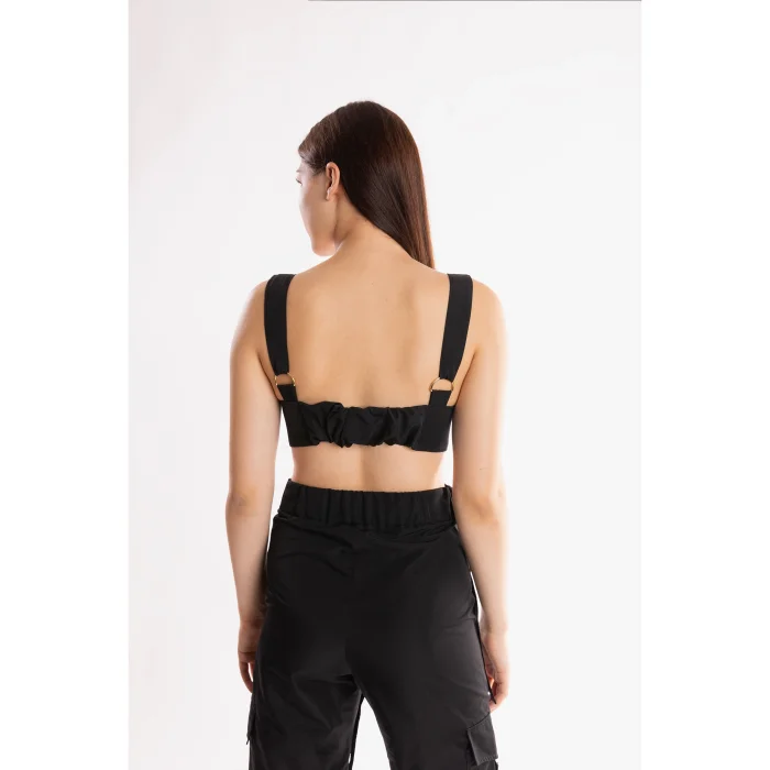 V metal aksesuar detaylı, askı ayarlı, arkası lastikli cepli bralette.