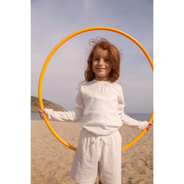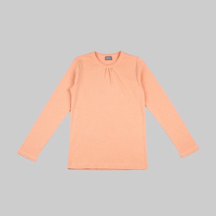 Kız çocuk pijama üstü, dar kalıplı, yuvarlak yakalı.
