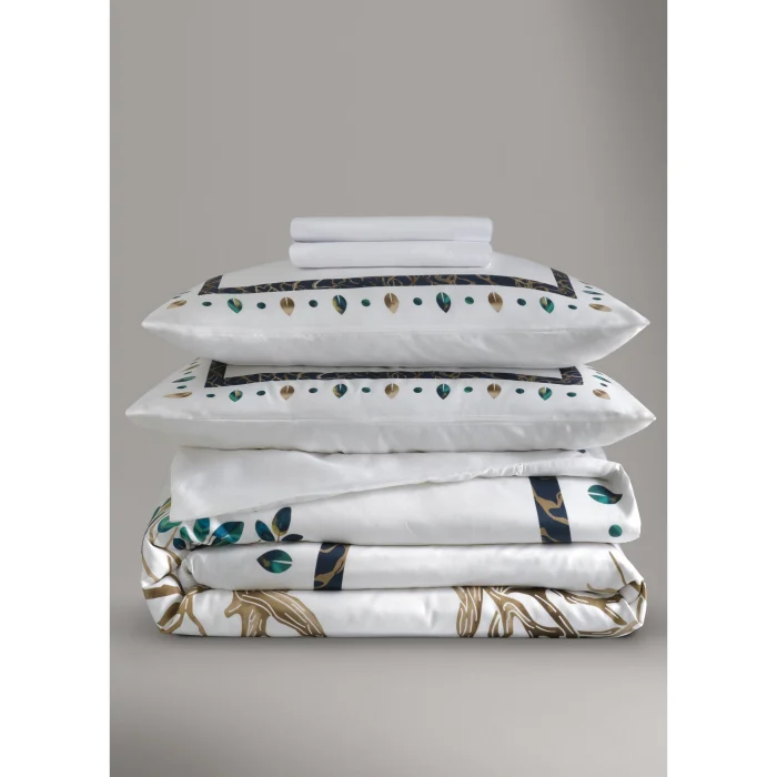 1 nevresim (200x220cm), 1 çarşaf (240x260cm) ve 2 yastık kılıfı (50x70cm) içerir