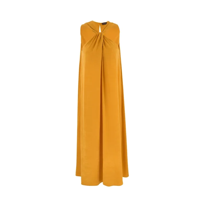 Zamansız bir şıklığa adım atın: Dahab Elbise. Bu yere kadar uzanan zarif tasarım, Tencel, ipek ve viskoz karışımı lüks kumaşı ile pürüzsüz ve akıcı bir silüet sunar.