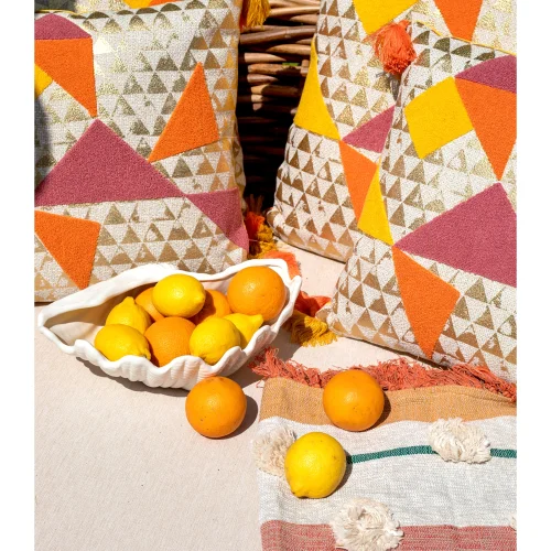 Karışık renkli, pamuklu kırlent, büyük boy, 60x60cm, iç dolgusu ile birlikte satılmaktadır