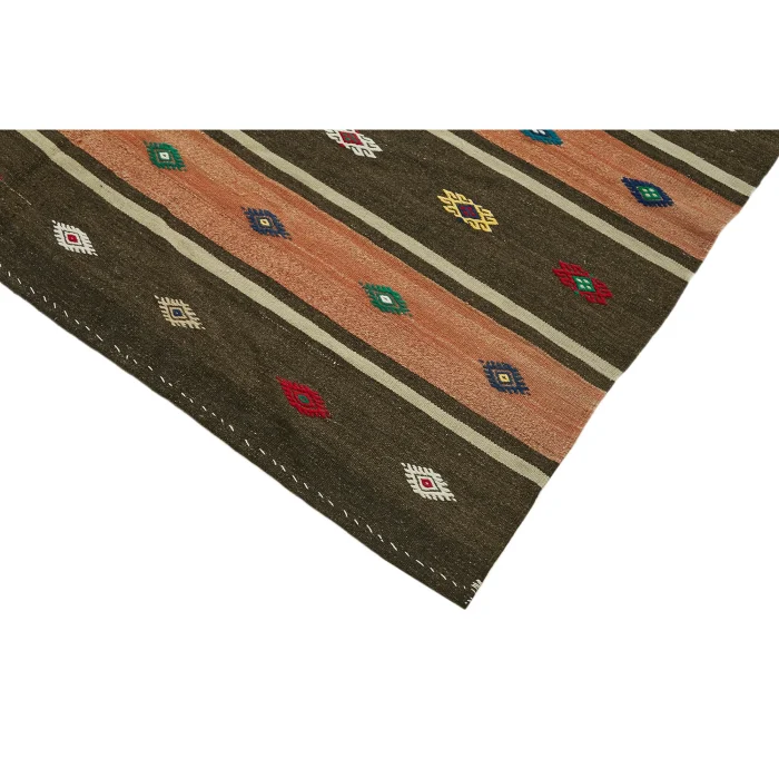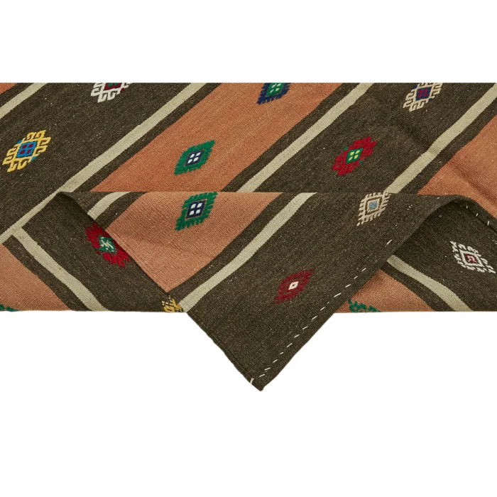 Anadolu’nun kültürel zenginliğini yansıtan 172 x 315 cm ebatındaki bu vintage kilim, pamuk zemin üzerine kaliteli yün ile el işçiliğiyle dokunmuştur.