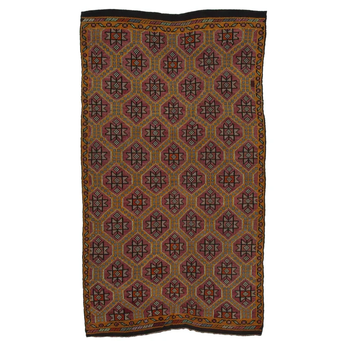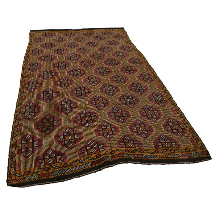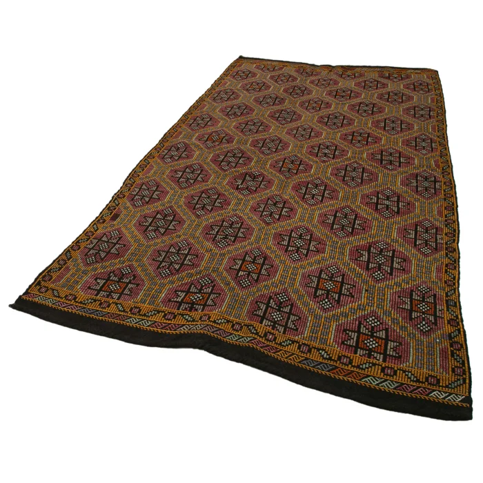 Vintage Cicim Kilim 167 cm genişliğinde 295 cm uzunluğunda 5 mm kalınlığındadır ortalama 10 kg ağırlığındadır. Elde eğrilmiş %100 Organik Yün ve Kıldan imal edilmiştir. Doğal yollardan elde edilen kök boya kullanılmıştır. / Vintage Cecim kilims are on 167 cm widht and 295 cm lenght and the pile height is 5mm, the approximate weight of the rug is 10 kg. It’s % 100 handknotted wool and goat hair rug. It’s made from the natural dye.