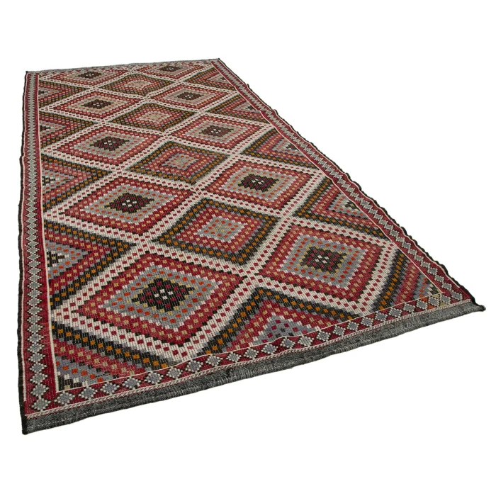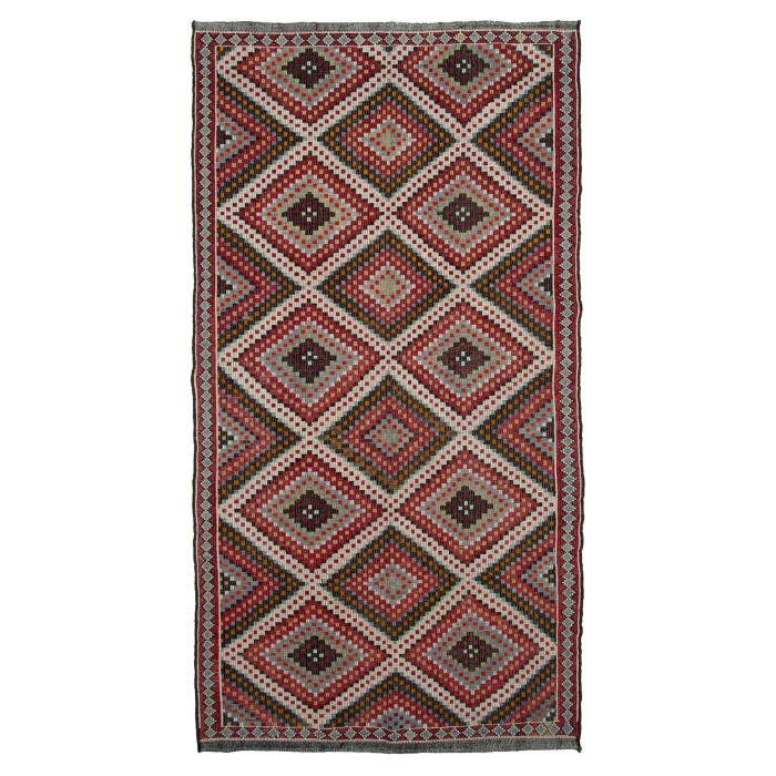 Vintage Cicim Kilim 181 cm genişliğinde 343 cm uzunluğunda 5 mm kalınlığındadır ortalama 13 kg ağırlığındadır. Elde eğrilmiş %100 Organik Yün ve Kıldan imal edilmiştir. Doğal yollardan elde edilen kök boya kullanılmıştır. / Vintage Cecim kilims are on 181 cm widht and 343 cm lenght and the pile height is 5mm, the approximate weight of the rug is 13 kg. It’s % 100 handknotted wool and goat hair rug. It’s made from the natural dye.
