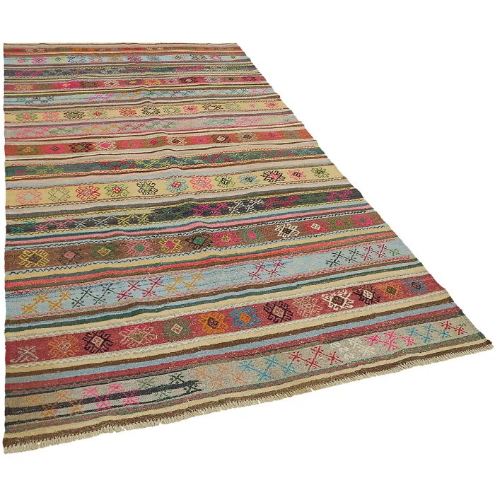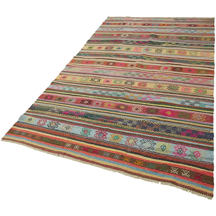 Anadolu’nun kültürel zenginliğini yansıtan 164 x 292 cm ebatındaki bu vintage kilim, pamuk zemin üzerine kaliteli yün ile el işçiliğiyle dokunmuştur Yaklaşık 30-40 yıllık bir geçmişe sahip olan bu özel parça, zamana meydan okuyan sağlamlığı ve otantik desenleriyle dikkat çeker 10 kg ağırlığında olup, yaklaşık 6 mm kalınlığıyla konforlu bir dokunuş sağlar Bu kilim, her ayrıntısında el emeği ve Anadolu’nun eşsiz hikayesini taşıyarak evinize sofistike bir zarafet katar