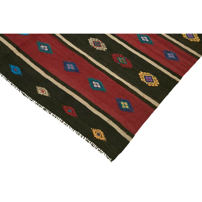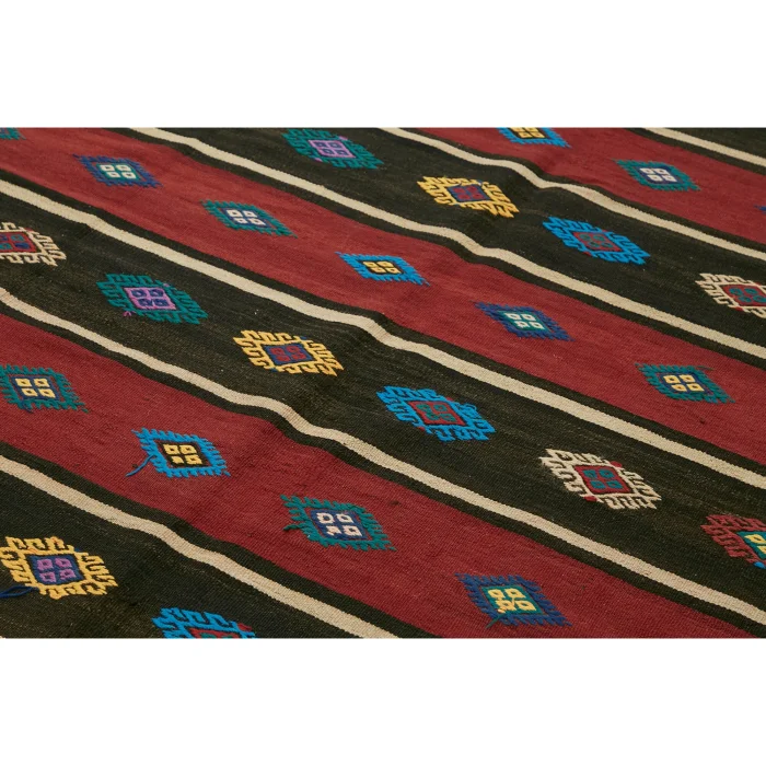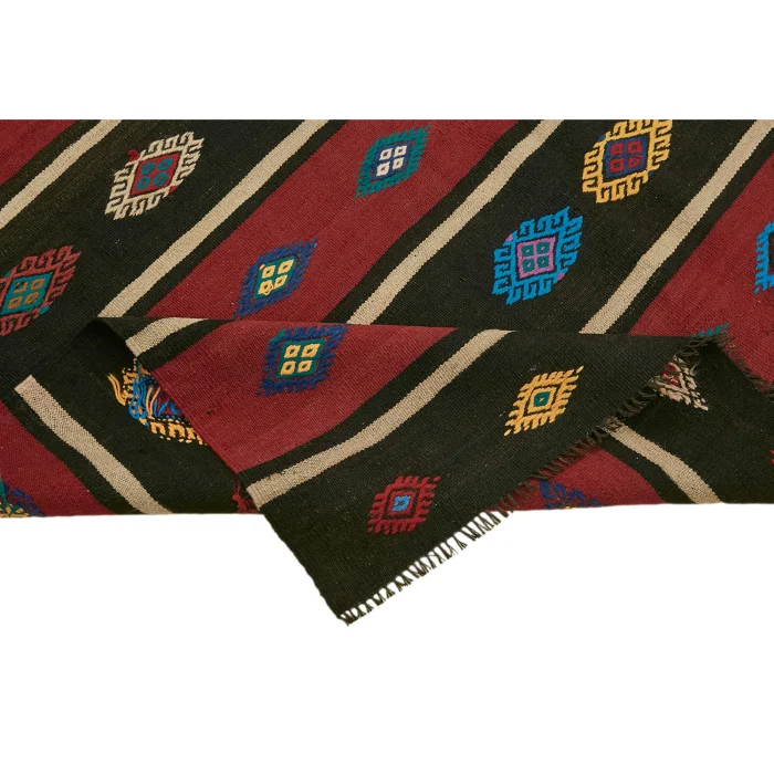 Anadolu’nun kültürel zenginliğini yansıtan 170 x 320 cm ebatındaki bu vintage kilim, pamuk zemin üzerine kaliteli yün ile el işçiliğiyle dokunmuştur Yaklaşık 30-40 yıllık bir geçmişe sahip olan bu özel parça, zamana meydan okuyan sağlamlığı ve otantik desenleriyle dikkat çeker 11 kg ağırlığında olup, yaklaşık 6 mm kalınlığıyla konforlu bir dokunuş sağlar Bu kilim, her ayrıntısında el emeği ve Anadolu’nun eşsiz hikayesini taşıyarak evinize sofistike bir zarafet katar