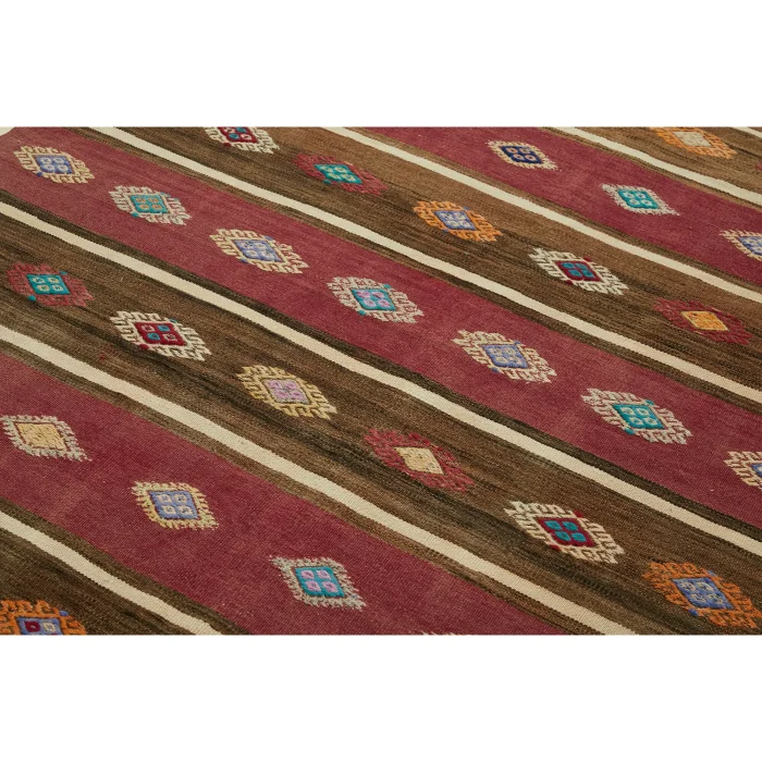 Anadolu’nun kültürel zenginliğini yansıtan 162 x 305 cm ebatındaki bu vintage kilim, pamuk zemin üzerine kaliteli yün ile el işçiliğiyle dokunmuştur Yaklaşık 30-40 yıllık bir geçmişe sahip olan bu özel parça, zamana meydan okuyan sağlamlığı ve otantik desenleriyle dikkat çeker 10 kg ağırlığında olup, yaklaşık 6 mm kalınlığıyla konforlu bir dokunuş sağlar Bu kilim, her ayrıntısında el emeği ve Anadolu’nun eşsiz hikayesini taşıyarak evinize sofistike bir zarafet katar