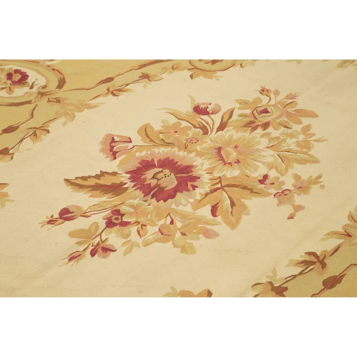 Aubusson Kilim, 264 cm genişliğinde 367 cm uzunluğunda ve yaklaşık 5 mm kalınlığındadır.