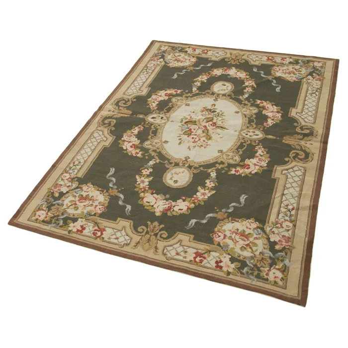 Needlepoint Kilim, 117 cm genişliğinde 174 cm uzunluğunda ve yaklaşık 5 mm kalınlığındadır.