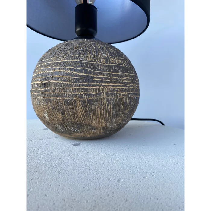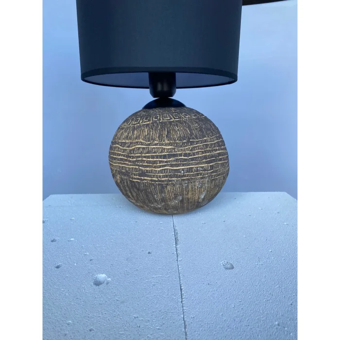 Seramik taban ve siyah kumaş abajurun birleşimi doğal ve modern bir görünüm yaratıyor. Seramik taban sıcak ve samimi bir atmosfer yaratırken, siyah abajur daha sofistike bir atmosfer katıyor.