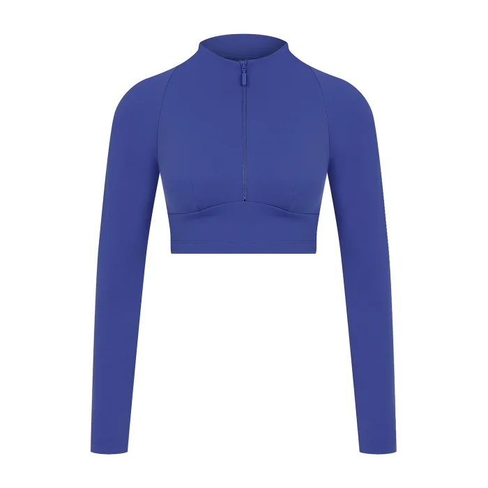 - Uzun kollu, yuvarlak yaka, tona ton önden fermuarlı spor sütyeni.