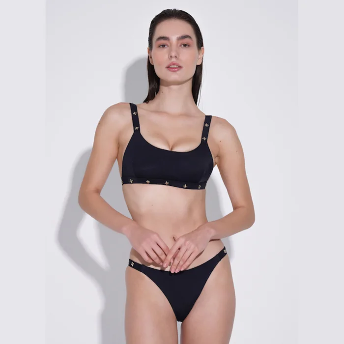 Yuvarlak yaka, omuzdan askılı üst & standard kesim alt.
