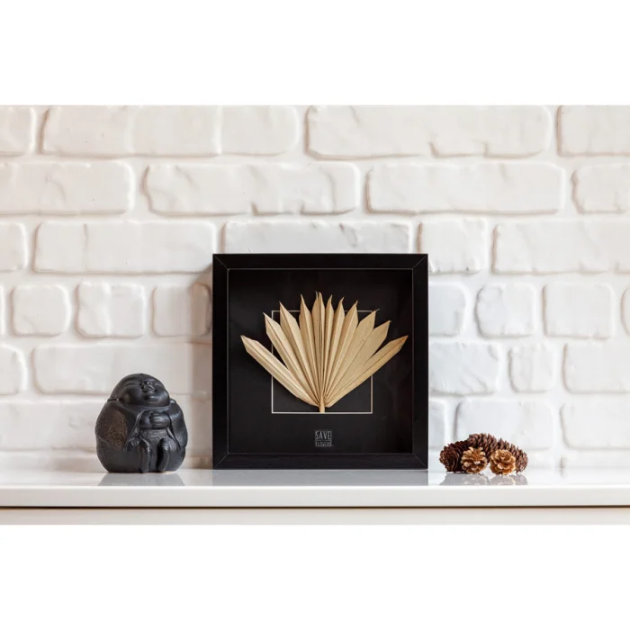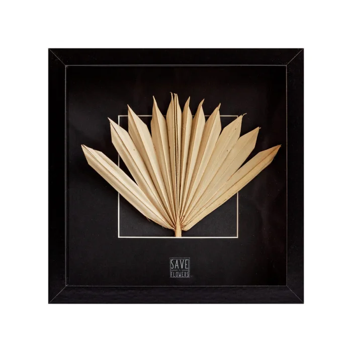 Cam çerçeve içinde kurutulmuş palmiye bitkisi tablodur. Ürün cam ön yüzeyli ve ahşap çerçevelidir.