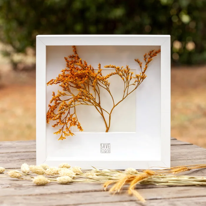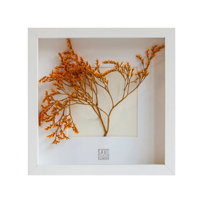 Cam çerçeve içinde kurutulmuş tatarıca bitkisi tablodur. Ürün cam ön yüzeyli ve ahşap çerçevelidir.
