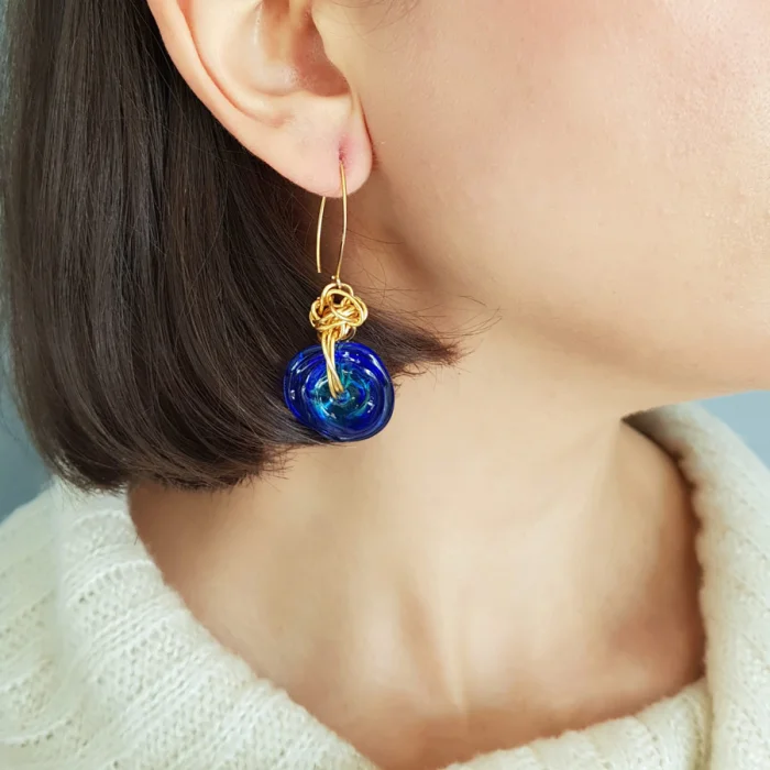 El yapımı murano camı, pirinç burgu, 925 ayar gümüş kopça üzeri 18 ayar altın kaplama.
