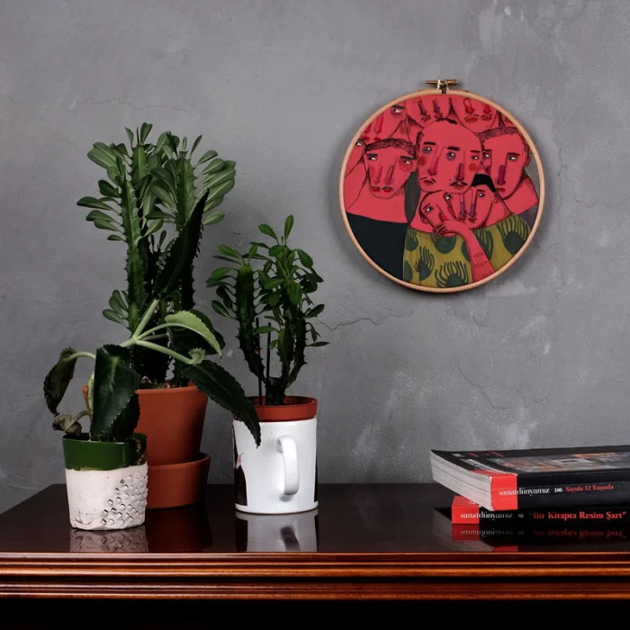 Kasnak üzerine kumaş gerilerek üretilmektedir. Serkan Akyol'un istenilen her çizimi uygulanabilmektedir.