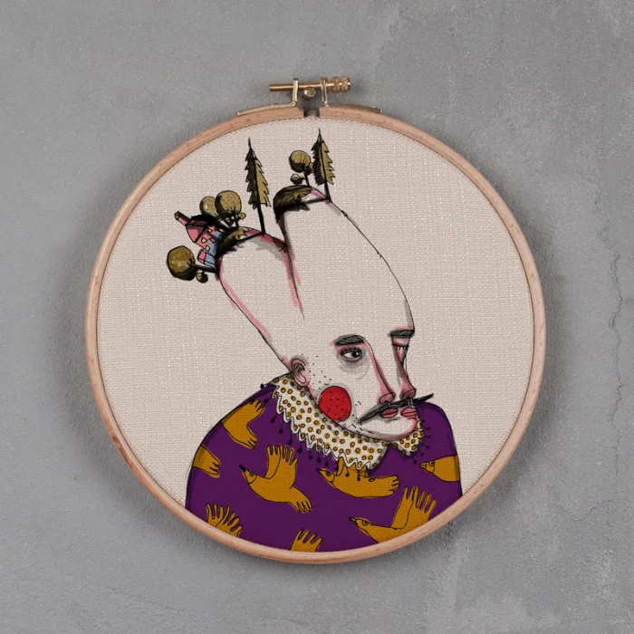 Kasnak üzerine kumaş gerilerek üretilmektedir. Serkan Akyol'un istenilen her çizimi uygulanabilmektedir.