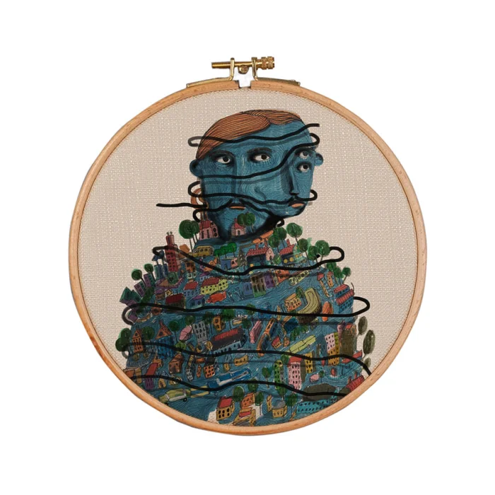 Serkan Akyol'un çizimlerinden keten kumaş üzerine dijital baskı alınarak hazırlanılmaktadır.