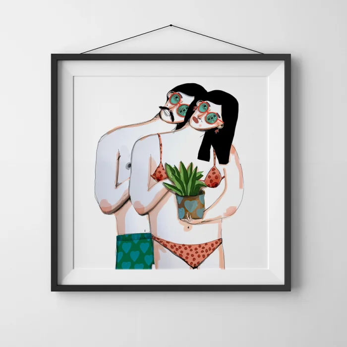 Marker, kuru ve sulu boyalar ile yapılan çizimlerden elde edilen bu eser, 210g mat Hahnemühle enhanced kağıdına giclée kalitesinde basılmıştır.
