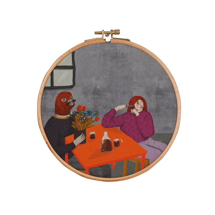 Kasnak üzerine kumaş gerilerek üretilmektedir. Serkan Akyol'un istenilen her çizimi uygulanabilmektedir.